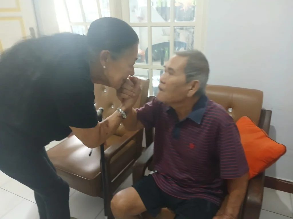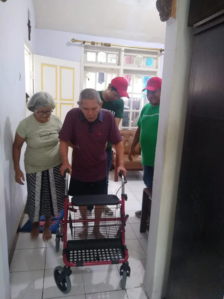 Nadat wij ook van al die vieze beestjes waren ontdaan, konden we verder gaan met het bezoeken van Budi Meijer. Die was niet op de kumpulan aanwezig omdat hij niet meer zelfstandig lopen kon. Wij hebben meteen een rollator voor hem gekocht, oh wat waren hij en zijn vrouw blij. Kreeg de eerste foto’s al snel toegestuurd dat Budi Meijer buiten voor het huis kon zitten. Eindelijk weer naar buiten.