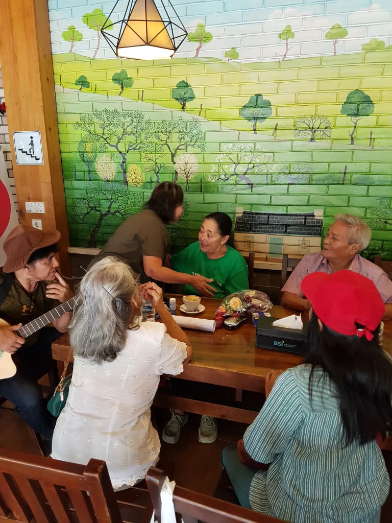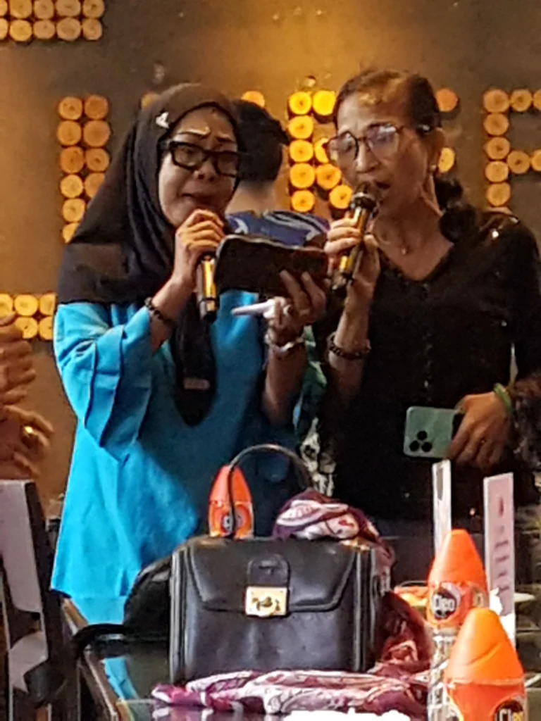 De volgende dag was er door de vertegenwoordiger Widodo een kumpulan georganiseerd in Resto Simpang Luwe. Ook onze vertegenwoordigster Yulia uit Surabaya hadden we over laten komen met 3 gesteunden. Zo leuk om die te zien. We hebben een loterij gehouden waar ze kleine prijsjes konden winnen en ook hier kregen ze allemaal een pen van Max Maakt Mogelijk. Zoals altijd was het eten pico bello en Robby Jansen heeft, zoals elke keer, met zijn zus Ernie gitaar gespeeld en gezongen. En het verrassende was dat hij het lied “Ring Ring I’ve got to sing” van Ferre Grignard had ingestudeerd, hij wist dat het mijn lievelingslied is. Ongelooflijk!!!
